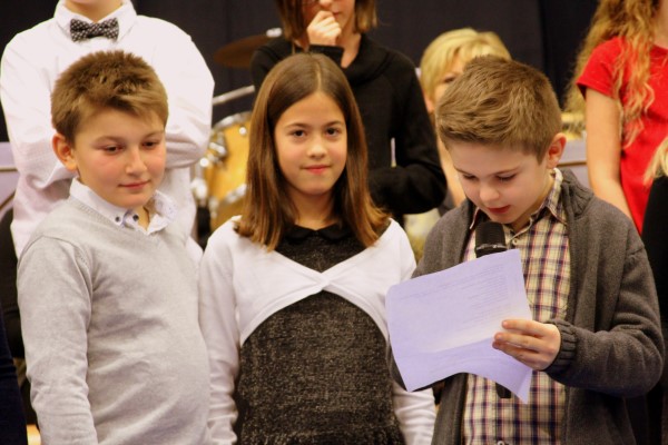 C’est sous la baguette de Mario Weigel, directeur de la Concordia, que cette cérémonie a débuté, avec un morceau d’ouverture « Festival Spirit » suivi d’un morceau mettant en avant un instrument peu pratiqué dans nos régions, le cor des Alpes, et joué avec brio par Angélique. Les musiciens ont ensuite cédé leur place aux enfants de l’école qui ont interprété une chanson après avoir récité un poème de circonstance souhaitant à toute l’assemblée les vœux de bonne et heureuse année.