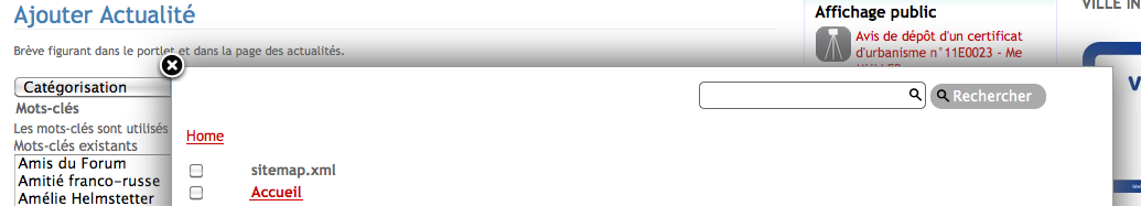 Copie de l'écran de recherche d'un lien corrélé pour la création d'une Actualité.