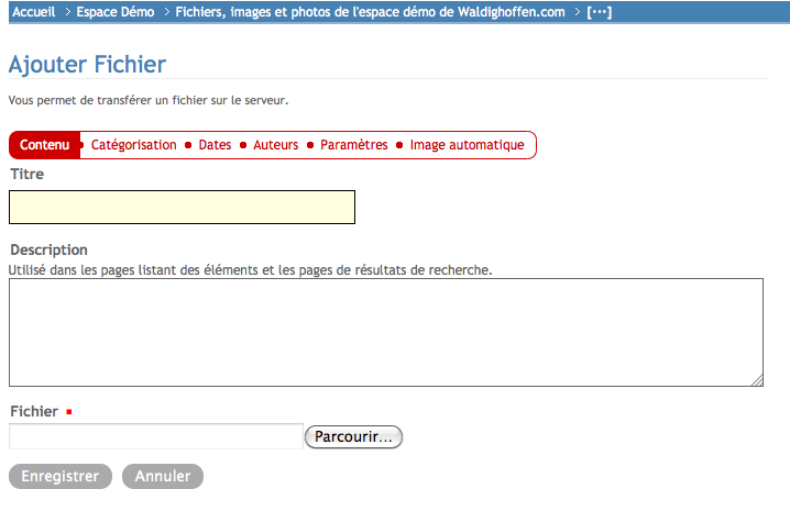 Copie d'écran montrant la page d'intégration d'un fichier dans le site waldighoffen.com