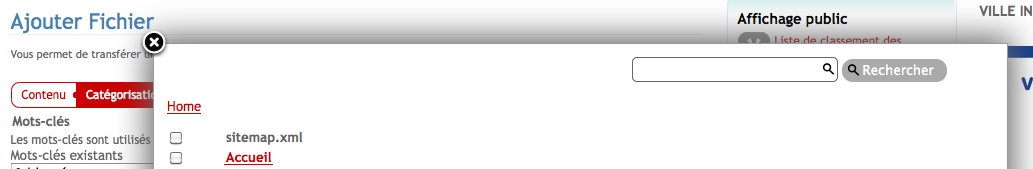 Copie d'écran de la fenêtre de recherche des liens corrélés pour l'intégration d'un fichier sur waldighoffen.com