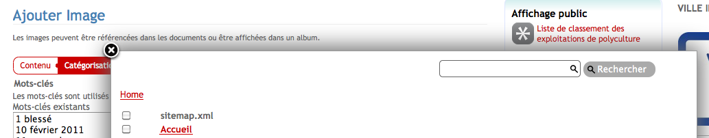Copie d'écran de la fenêtre de recherche des liens corrélés pour l'intégration d'une image sur waldighoffen.com