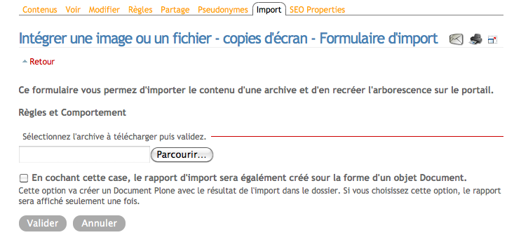 Visuel de l'onglet d'importation d'images en masse ouvert.