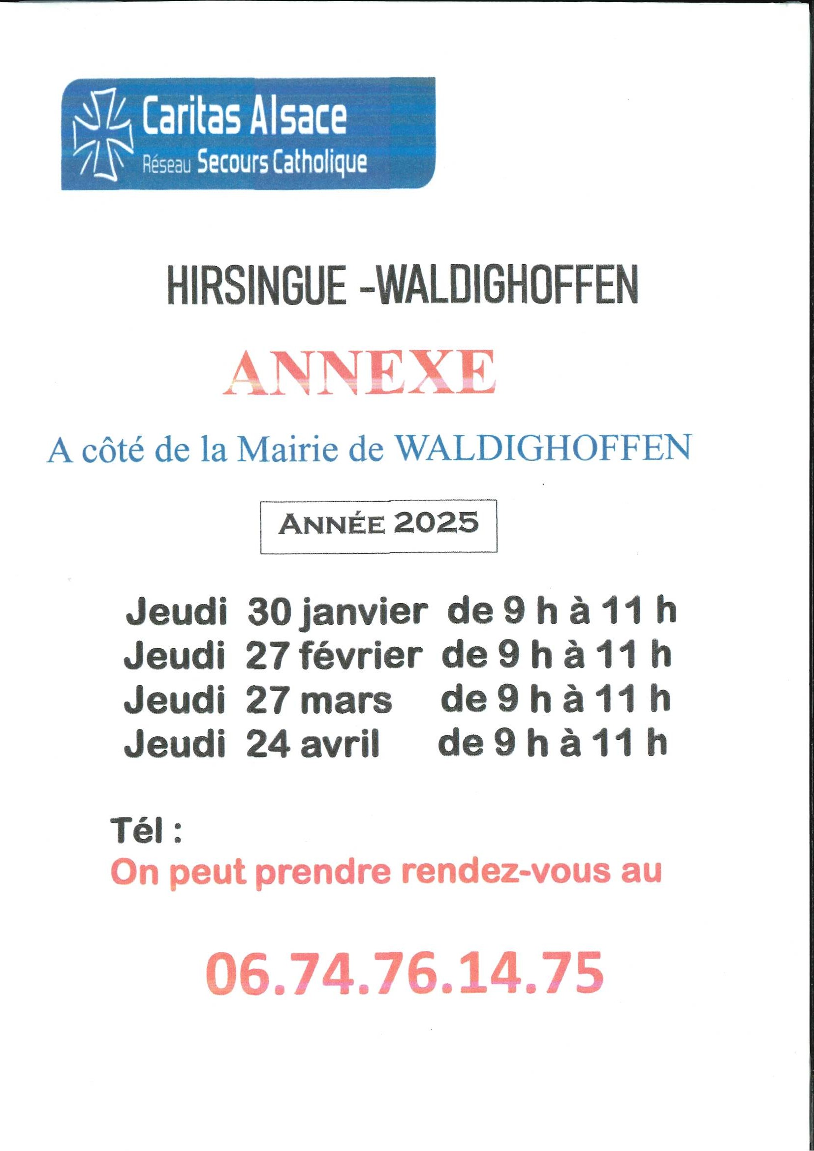 Vous êtes ici : Accueil Photographies et documents annexes Waldighoffen Affiche Caritas Permanences janvier à avril 2025