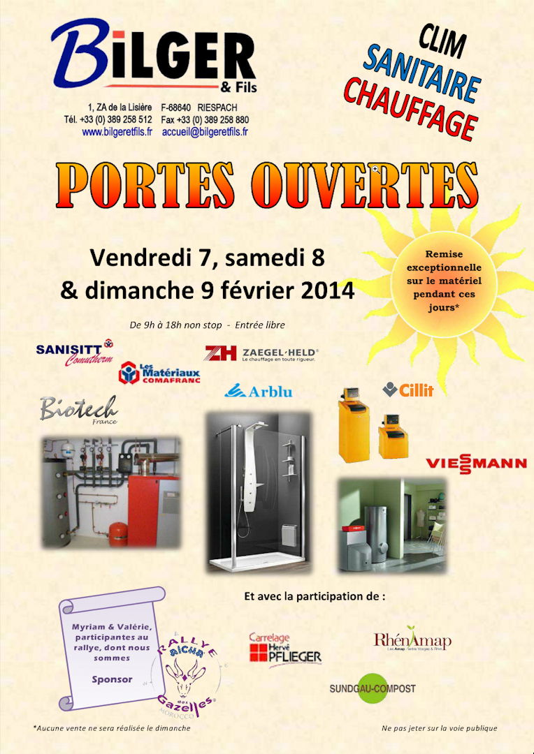 Portes ouvertes chez Bilger et Fils vendredi 7, samedi 8 et dimanche 9 Février 2014, de 9h à 18h non stop - Entrée libre