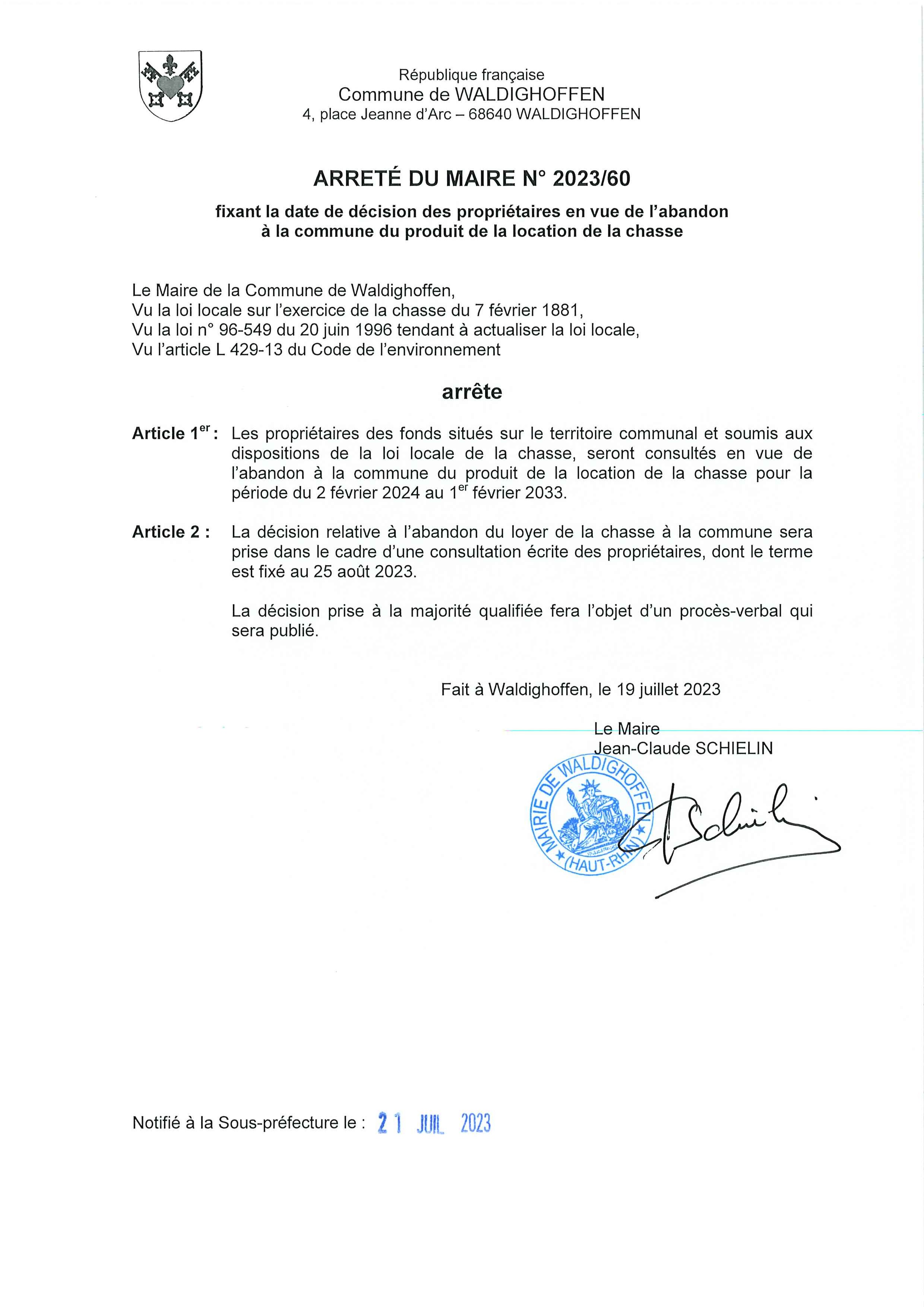 Vous êtes ici : Accueil Photographies et documents annexes Waldighoffen Arrêté du maire n°2023/60