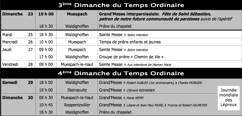 Vous êtes ici : Accueil Photographies et documents annexes Waldighoffen Captures d’écran calendriers liturgiques Calendrier liturgique de janvier 2011 - seconde partie