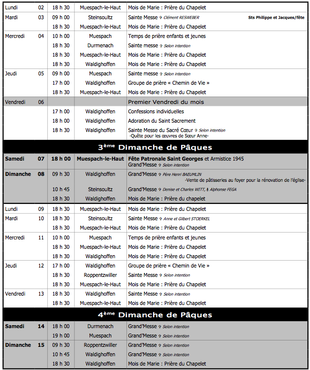 Vous êtes ici : Accueil Photographies et documents annexes Waldighoffen Captures d’écran calendriers liturgiques Capture d’écran calendrier liturgique du 2 au 15 mai 2011