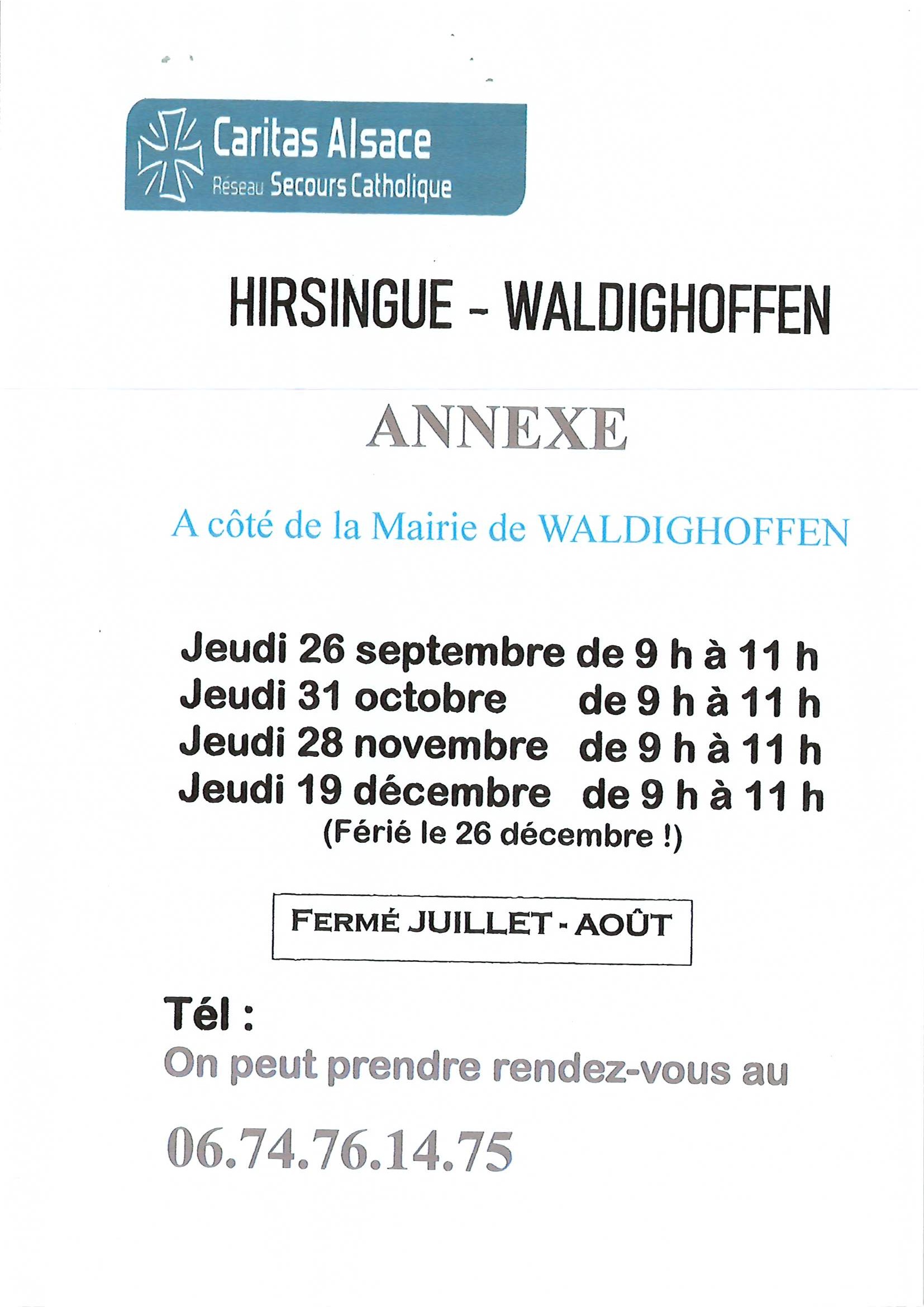Vous êtes ici : Accueil Photographies et documents annexes Waldighoffen Caritas. Permanences à Waldighoffen de septembre à décembre 2024