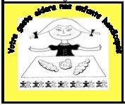 Dessin d'une petite fille présentant des brioches avec la phrase "Votre geste aidera nos enfants handicapés".
