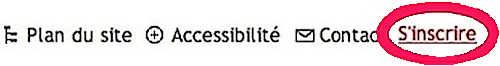 Visuel précisant où il faut cliquer pour s'inscrire sur le site (en haut à droite sur la page d'accueil)