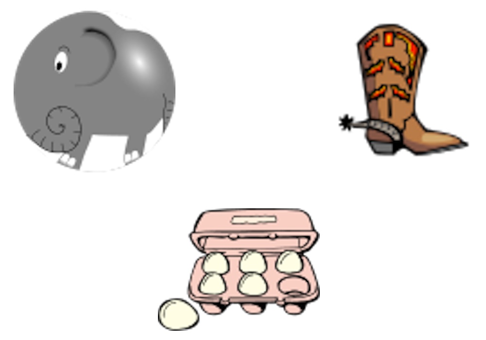 Exercice pour la mémoire avec 3 images manquantes sur 6.