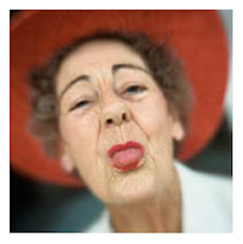 Photo d'une dame tirant la langue pour la brochure du PAC EUREKA.
