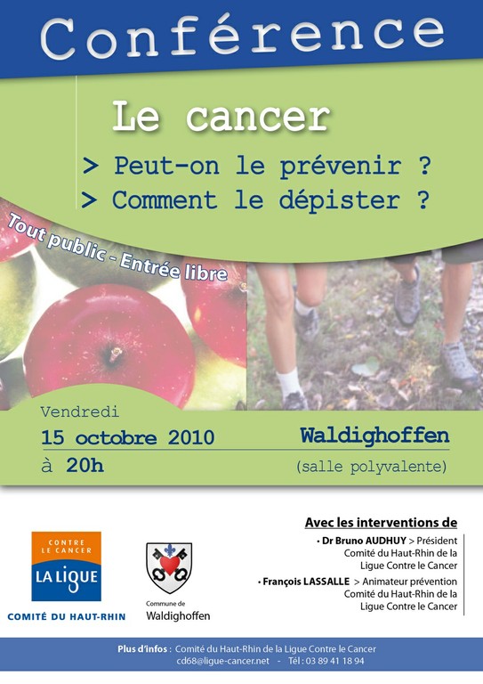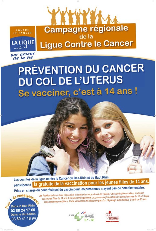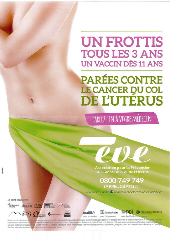 - Affiche pour l'annonce d'une conférence tous public "Prévenir et dépister pour vaincre le cancer du col de l'utérus" le 29 avril à Mulhouse.