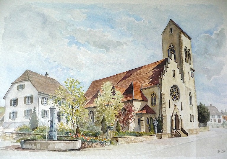 - Couverture de l'annuaire 2010 de la Société d'Histoire du Sundgau. La reproduction est celle d'une aquarelle de Bernadette Zeller (Uffheim)