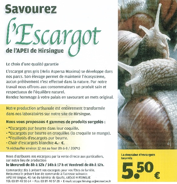 Affiche savourez l'escargot de l'APEI de Hirsingue