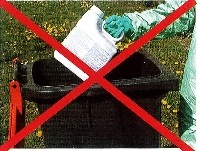 Photo illustrant le fait qu'il est interdit de jeter les bidons vides de produits phytosanitaires dans la poubelle d'ordures ménagères.