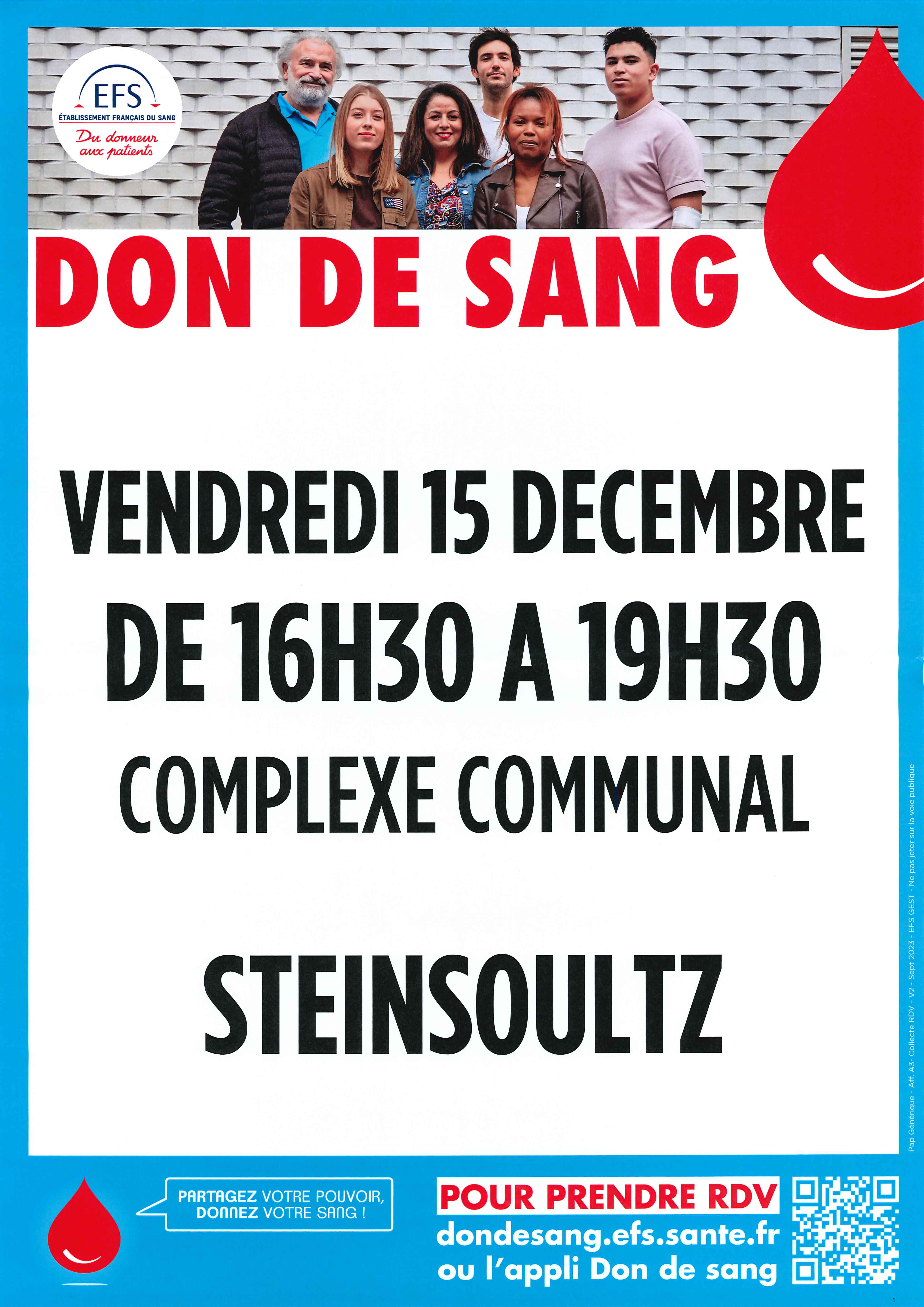 Affiche don de sang Steinsoultz le 15 décembre 2023