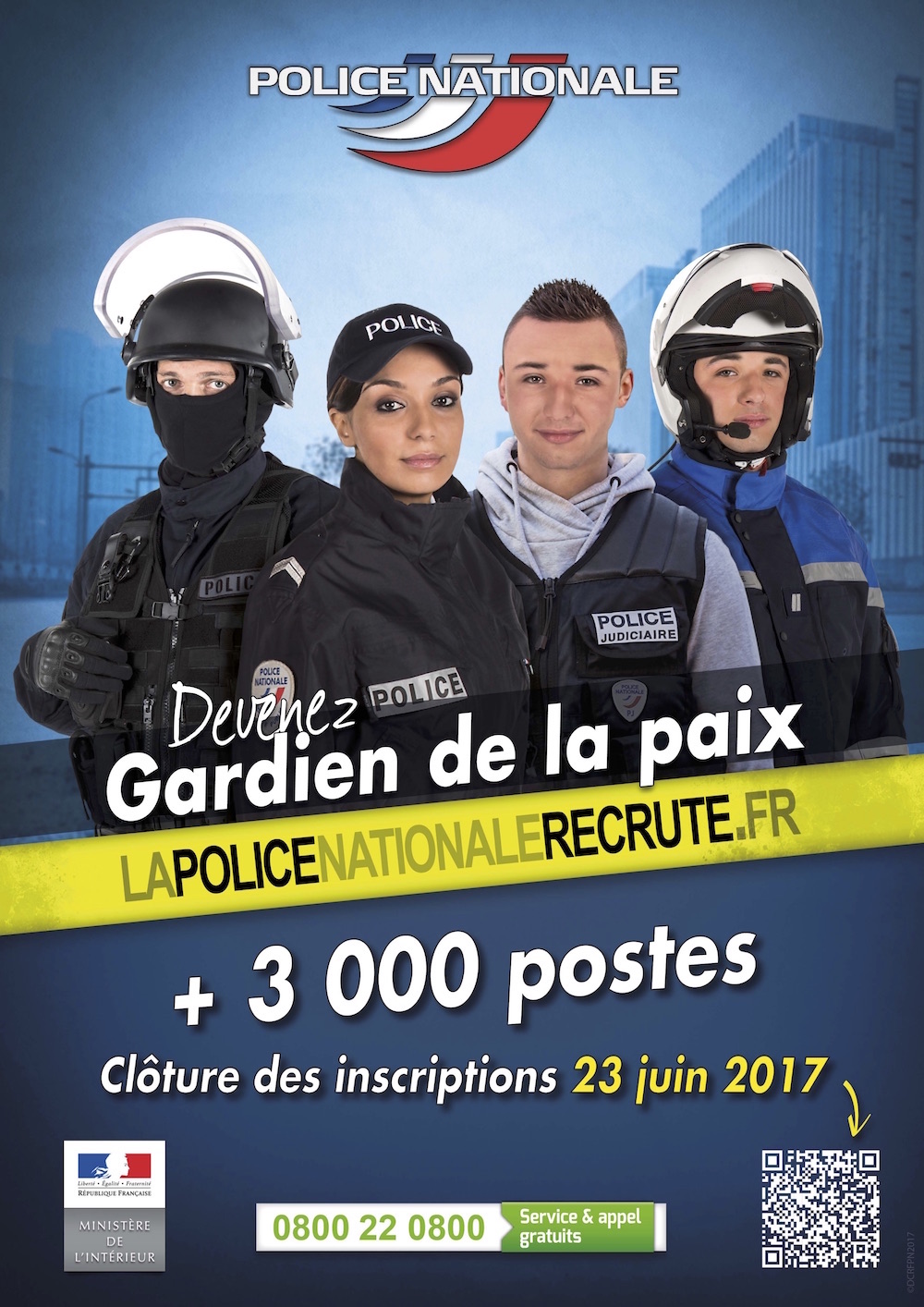 La police nationale recrute des gardiens de la paix. Les personnes souhaitant s’inscrire au concours ont jusqu’au 16 juin 2017.