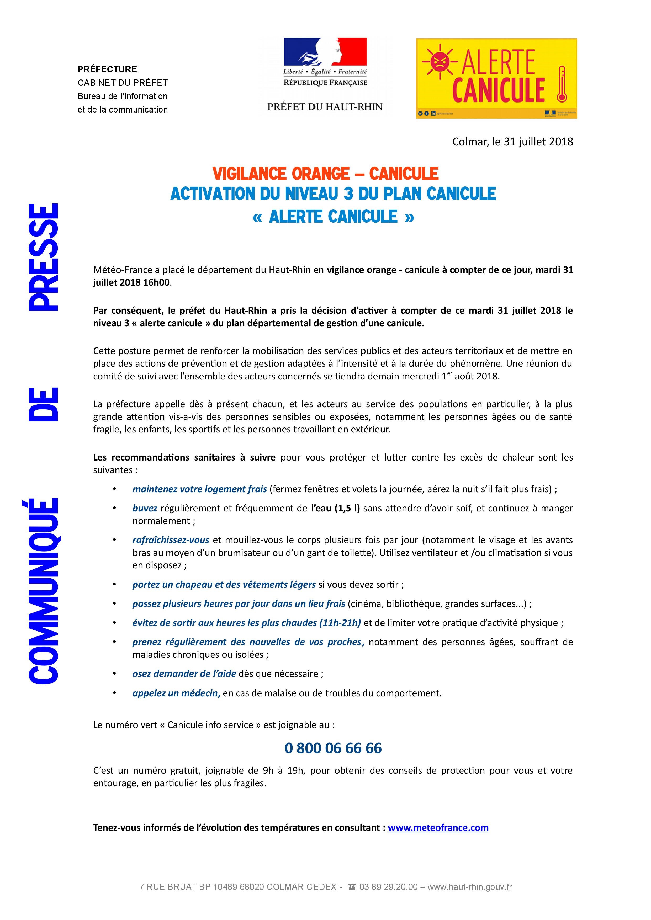 Les fortes chaleurs annoncées dans les prochains jours ont conduit la Préfecture du Haut-Rhin à déclencher le plan canicule.