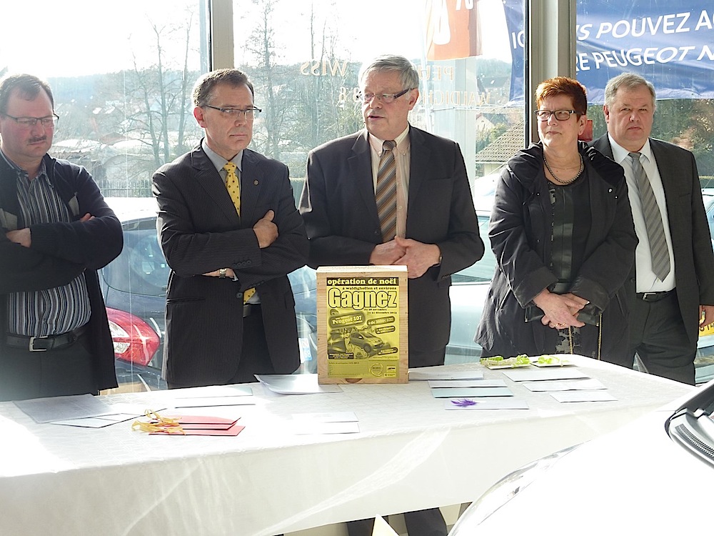 Remise de la voiture de l'opération de Noël 2013 de l'Acaw au garage Wiss