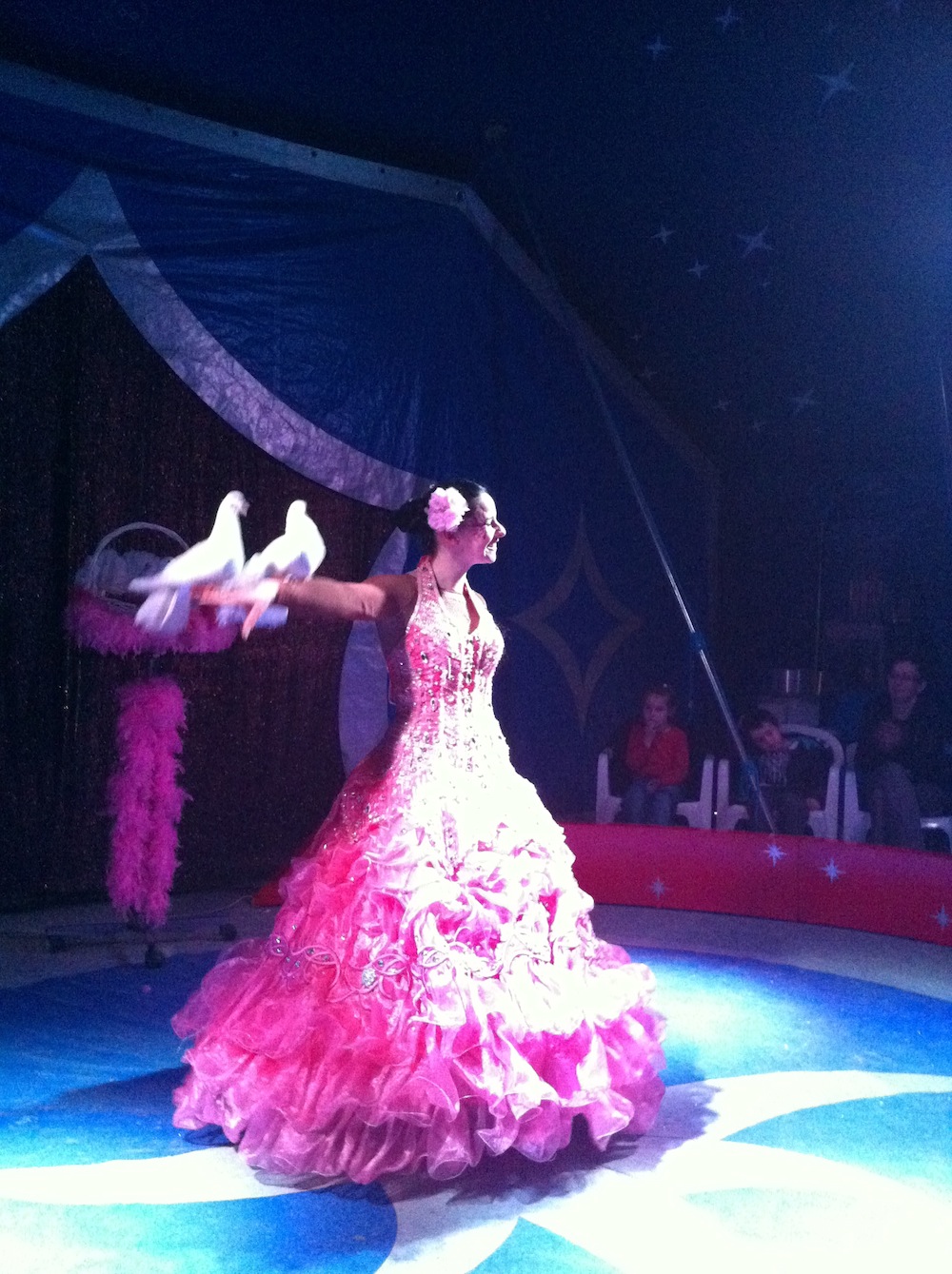 Une merveilleuse démonstration de dressage de colombes proposée par Mandy du Cirque familial Festival de Cannes à Waldighoffen.