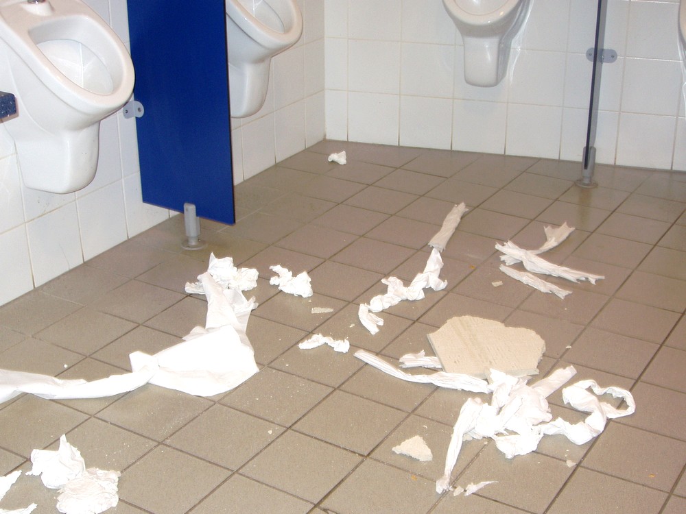 Toilettes de l'école jonchées de détritus
