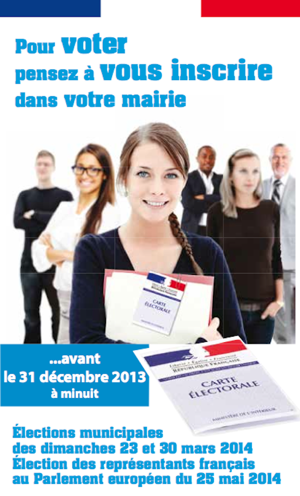 Visuel du dépliant de communication sur l'inscription sur les listes électorales avant le 31 décembre 2013.
