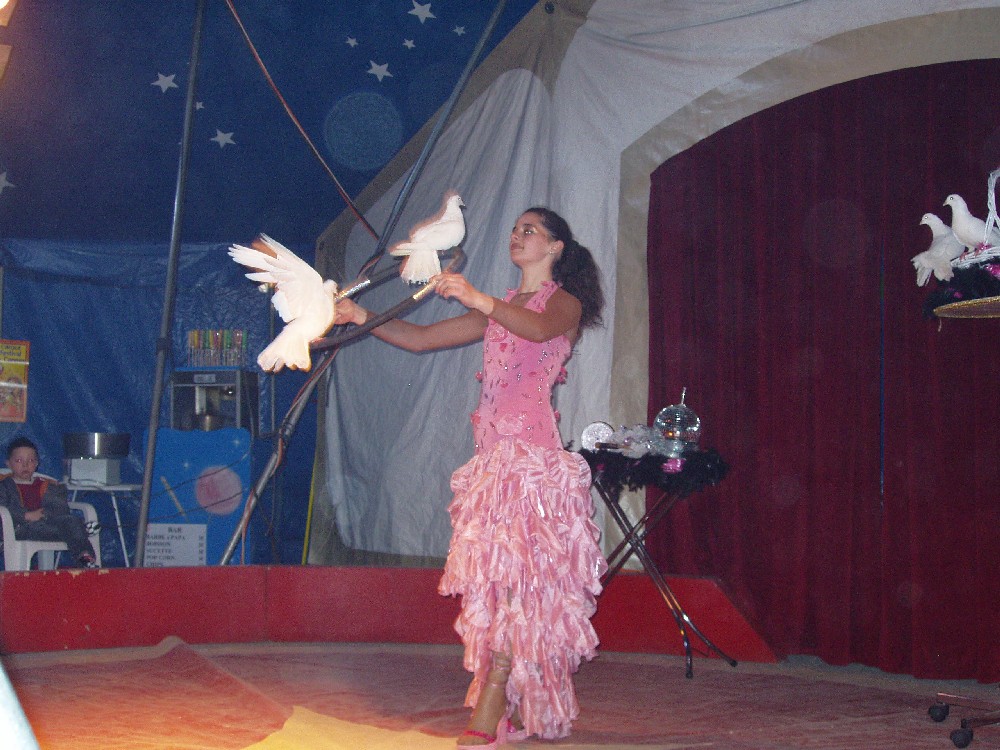 Photo du numéro de colombes du Cirque Festival de Canne le mardi 13 avril 2010 à Waldighoffen.