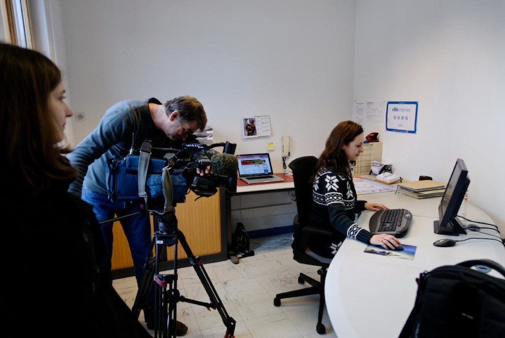 Vous êtes ici : Accueil Photographies et documents annexes Waldighoffen Les photos du reportage de France 3 sur les 4@ Stéphanie est filmée au travail