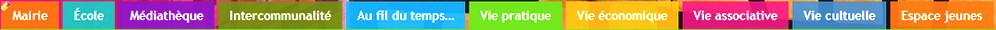 Onglets Mairie, Ecole, Médiathèque, Intercommunalité, Au fil du temps, Vie pratique, Vie économique, Vie associative, Vie cultuelle et espace jeunes