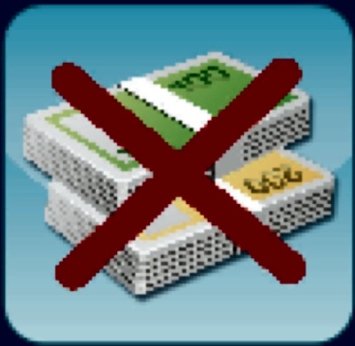 Logo de billets de banque barrée par une grosse croix rouge.