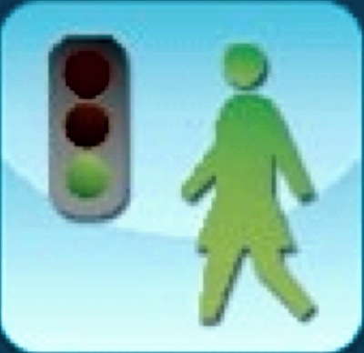 Logo montrant un piéton en mouvement et un feu tricolore.