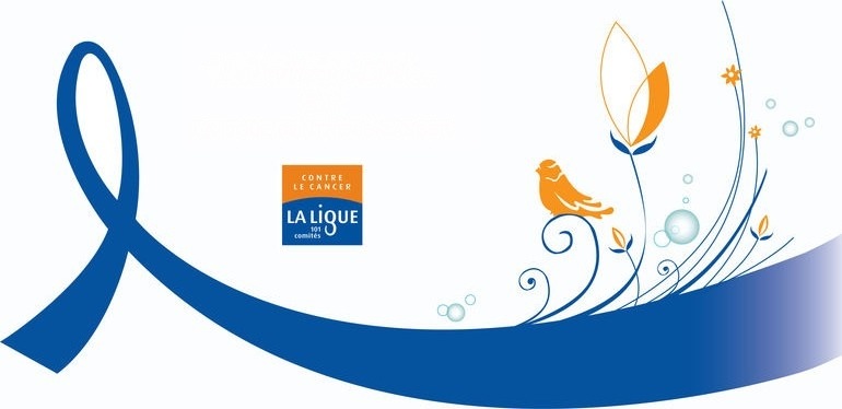 Arabesques et oiseaux avec le logo de la Ligue conte le cancer.
