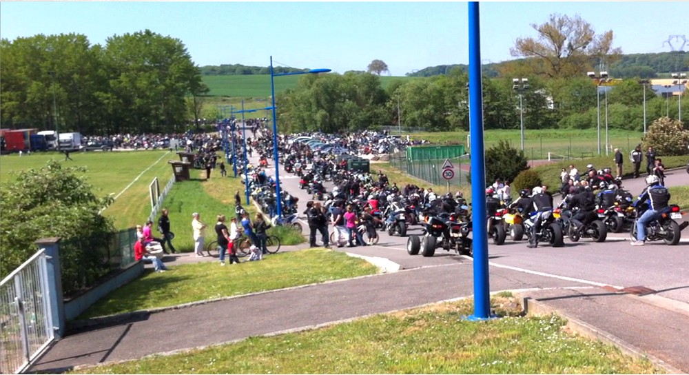 Vue du lieu de rassemblement des 3000 motards au rassemblement du 1er mai 2011