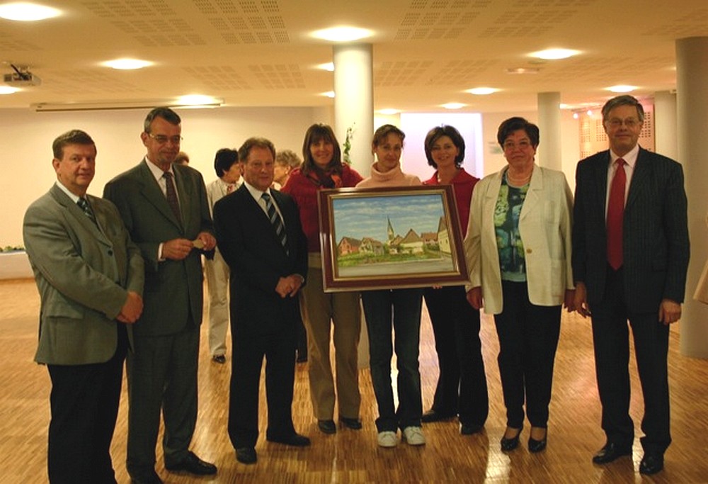 Vous êtes ici : Accueil Photographies et documents annexes Waldighoffen Photos René Eglin M. Eglin à la remise du cadeau à Mlle Stoerkel