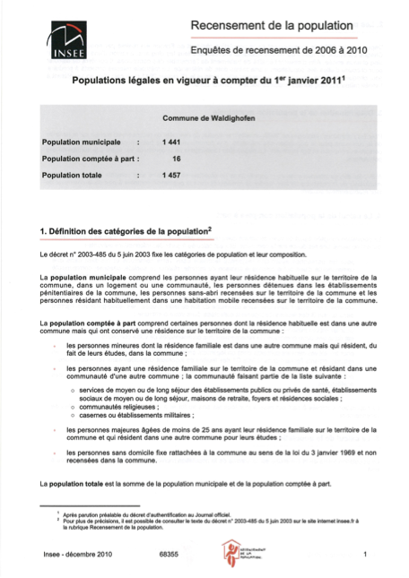 Vous êtes ici : Accueil Photographies et documents annexes Waldighoffen Recensement de la population de Waldighoffen 2011 Recensement population 2011 document 3