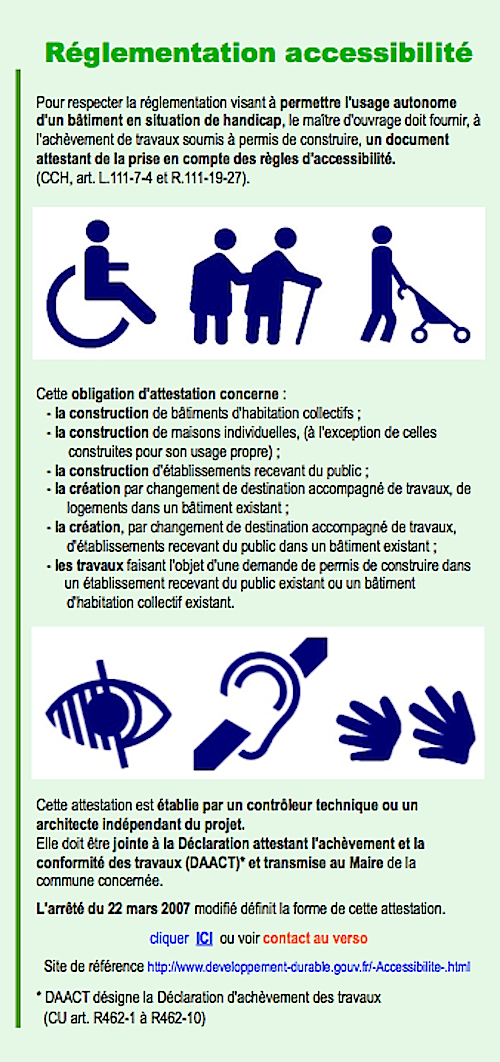 Page réglementation accessibilité du dépliant sur les permis de construire "Que garantissent les attestations"