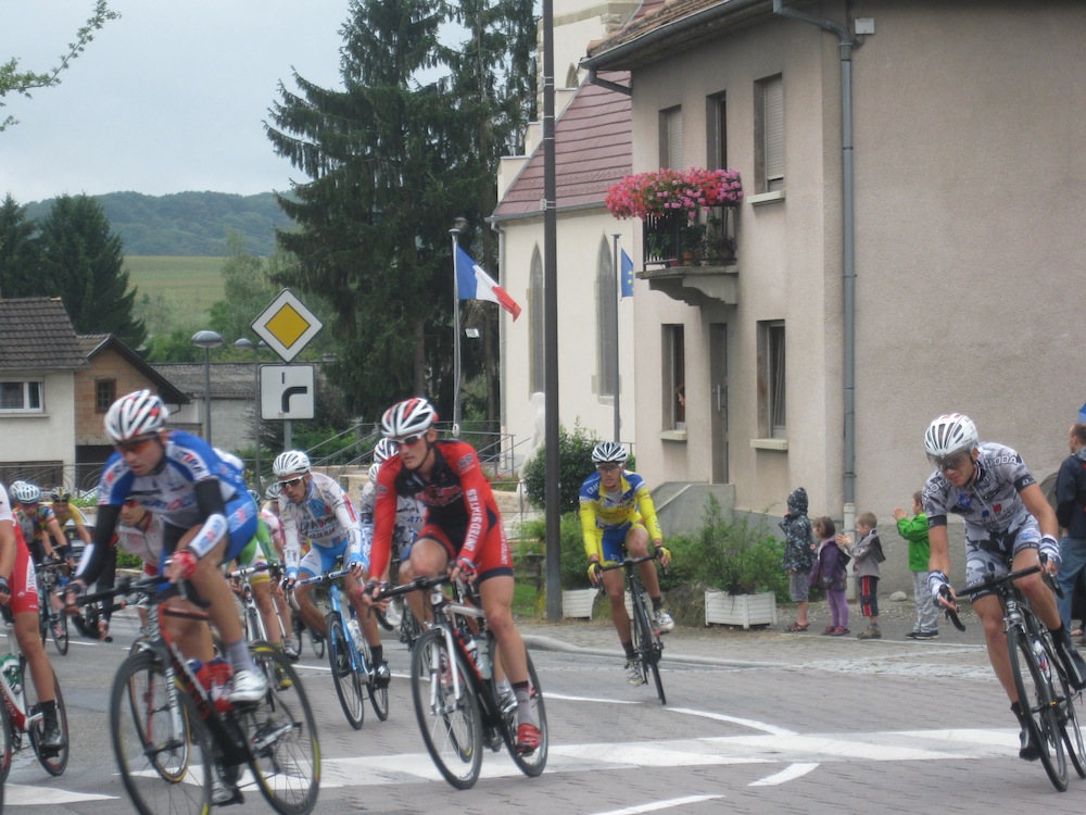 Les derniers coureurs cyclistes qui traversent Waldighoffen pendant le Tour d'Alsace 2014.