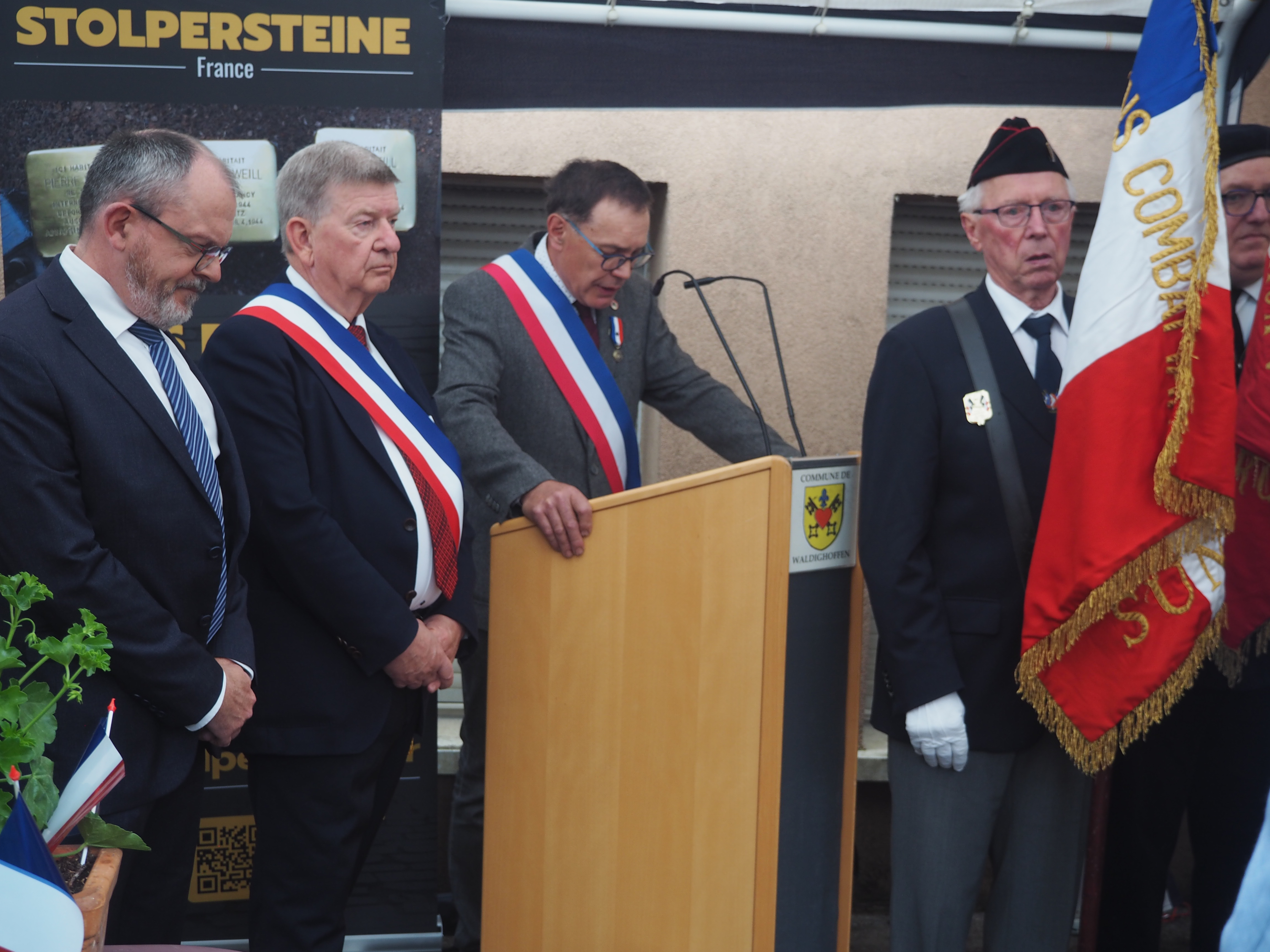 Vous êtes ici : Accueil Au fil du temps… Annexes, documents Au fil du Temps Pose du Stolperstein le 15/05/2024 pour M. Lucien Wolff-20