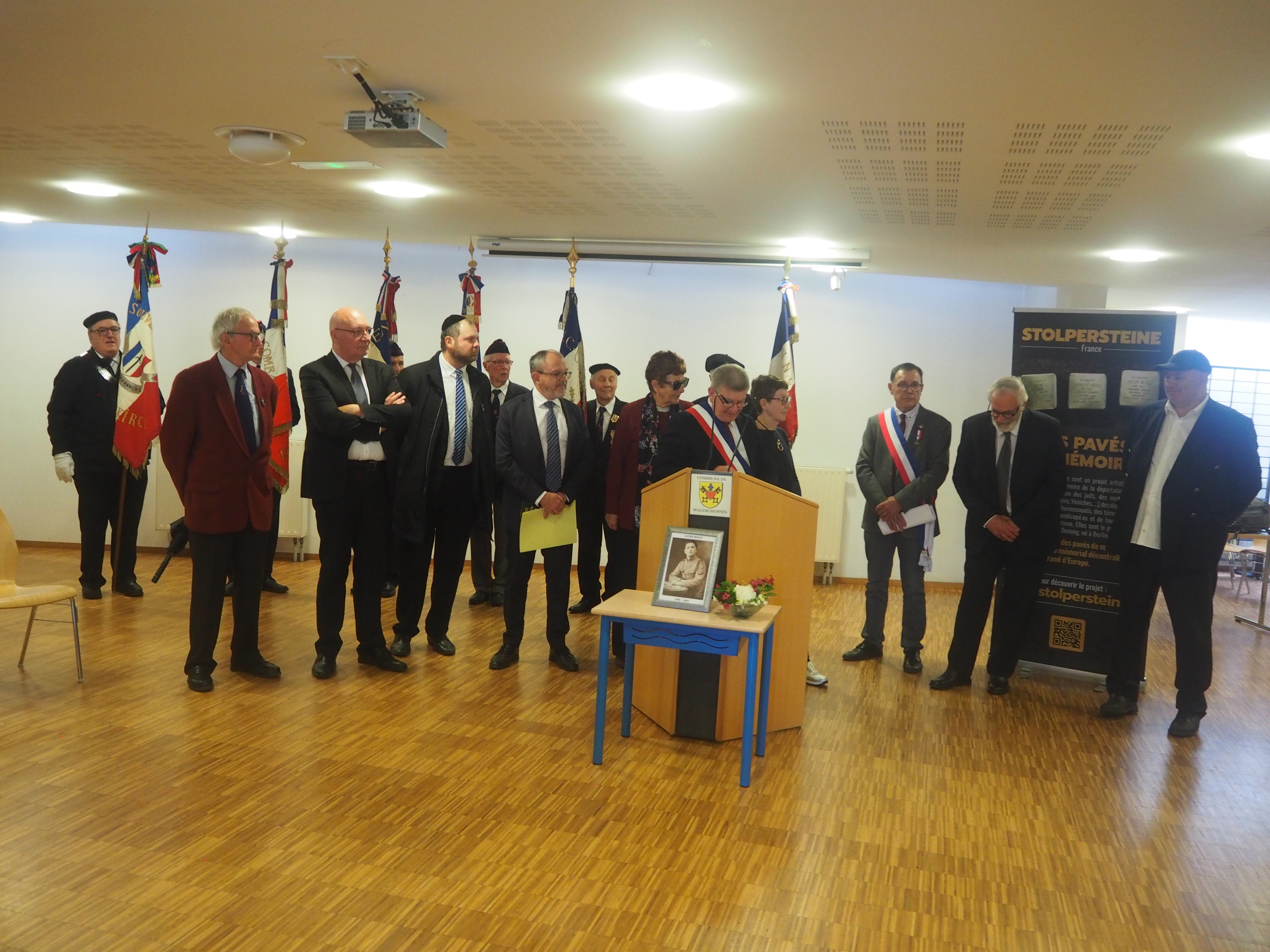 Vous êtes ici : Accueil Au fil du temps… Annexes, documents Au fil du Temps Pose du Stolperstein le 15/05/2024 pour M. Lucien Wolff-6