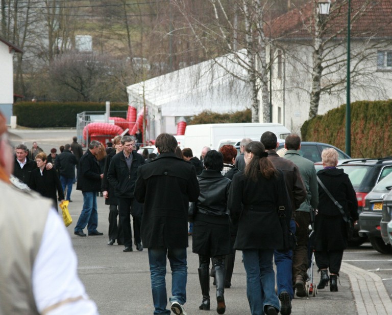 - Beaucoup de monde se dirige vers l'entrée de l'Expo-Habitat 2011 de Waldighoffen.