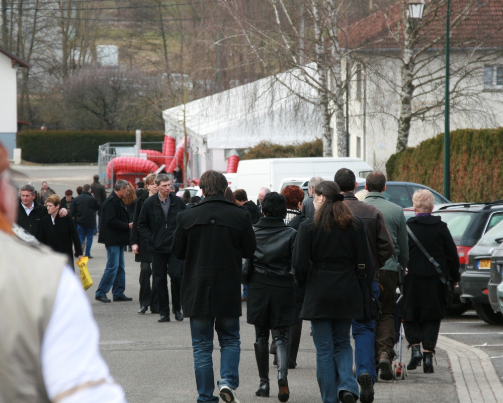 Beaucoup de monde se dirige vers l'entrée de l'Expo-Habitat 2011 de Waldighoffen.