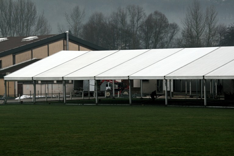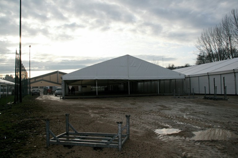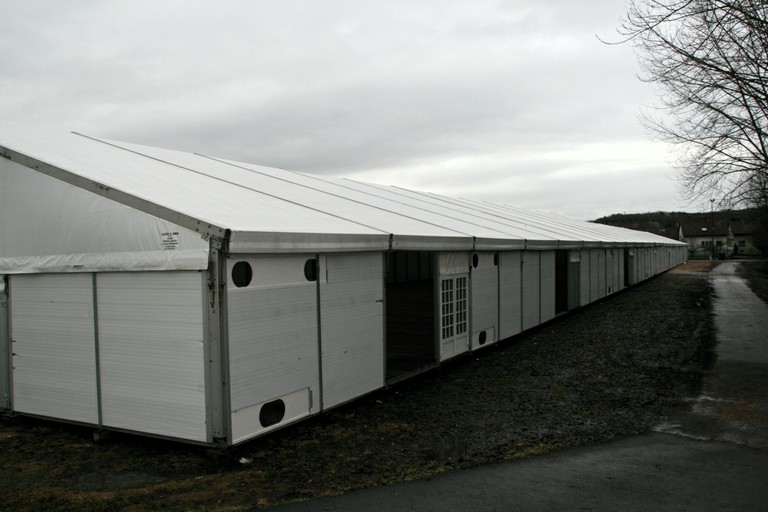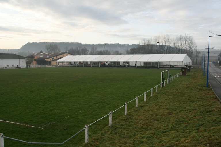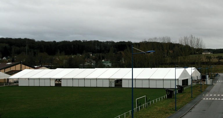 - Les tentes blanches de la prochaine Expo Habitat de Waldighoffen, photo prise le 13 janvier 2011.