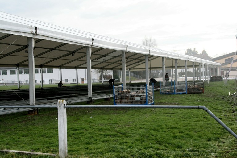 - Vue du stade des tentes de l'Expo Habitat 2011 en pleine installation à Waldighoffen.