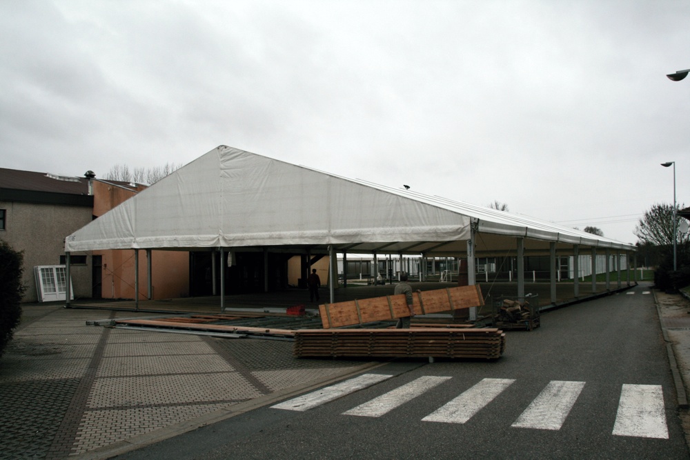 Installation du plancher des tentes pour l'Expo Habitat 2011 à Waldighoffen
