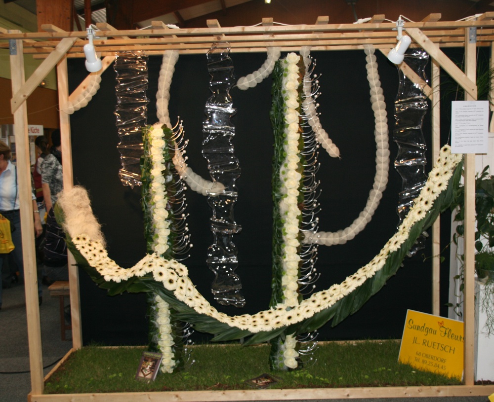 La première partie d'une vitrine florale à l'Expo-Habitat de Waldighoffen réalisée par Aurélie Ruetsch (primée médaille d'argent aux olympiades des métiers à Paris) de Sundgau Fleurs à Oberdorf.