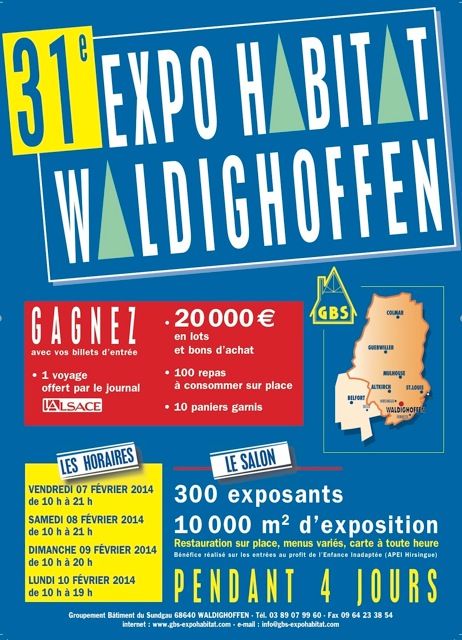 Affiche de la 31ème Expo Habitat de Waldighoffen du 7 au 10 février 2014.