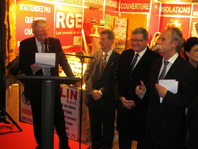 - Fernand Heinis a prononcé un discours pour sa 32ème inauguration de l'Expo Habitat le vendredi 6 février 2015 à Waldighoffen. Photo S. SPITALERI, L'Alsace.