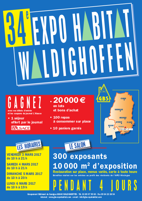 Affiche de la 34ème Expo Habitat de Waldighoffen du 3 au 6 mars 2017.