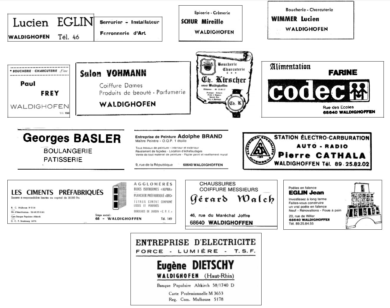 Histoire des commerces de Waldighoffen, présentée par René Minéry dans le "Vivre à Waldighoffen" n°77 de novembre 2009, sous forme de tampons publicitaires - doc 4